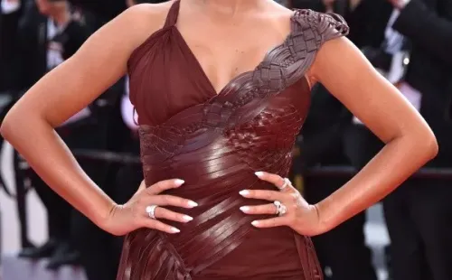 Por otro lado, en lo que respecta al calzado usó uno alto y plateado con un collar de lujoy unos aros colgantes del mismo material. Sin embargo, este no fue el único look con el que sorprendió debido a que en el evento Festival de Cannes sorprendió con una original e innovadora pieza de diseño en color marrón.