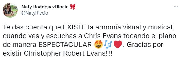 “Chris Evans vuelve a ser tendencia ahora por tocar el piano con virtuosismo; demuestra que no sólo es una cara bonita, tiene sangre de artista, pese a que en la pantalla le ha pasado un poco lo que en su momento sucedió con Marilyn Monroe; su belleza opacó su talento”, escribió uno de los seguidores del Capitán América. De esta manera, queda en evidencia que tiene un don para manejar el instrumento y que la gente quiere seguir viendo más como esto.