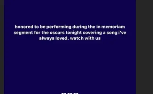 Finalmente, cantó el single de “The Beatles”, Yesterday. La cantante hizo emocionar a todos con una deslumbrante performance. En el segmento se recordó a celebridades como Kobe Bryant, Steve Golin, Agnes Varda, Doris Day, Seymour Cassel y Kirk Douglas, entre otros.