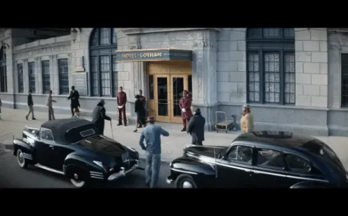 Como hemos mencionado, este avance contiene una referencia a DC Comics, precisamente al universo de Batman. Llegando a la última parte del tráiler, donde muestran las caras principales de la cinta, tenemos en primer plano la llegada de unos hombres a un hotel. ¿Cuál es la curiosidad? el establecimiento al que ingresan se llama “Gotham”, tal como la mítica ciudad de Bruce Wayne. ¡Este es el momento!