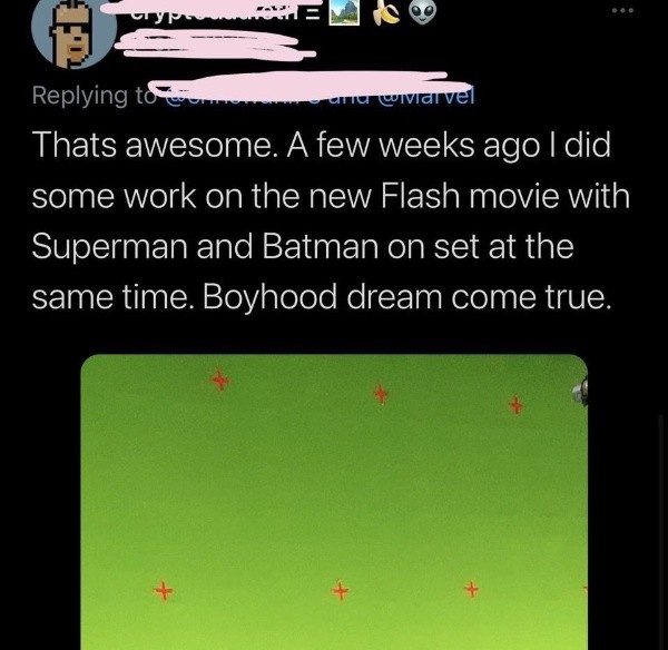 Sin embargo, en las últimas horas las redes sociales se movilizaron al conocerse que Superman estará en The Flash, el próximo film protagonizado por Ezra Miller y dirigido por el argentino Andy Muschietti. “Es increíble. Hace unas semanas trabajé en la nueva película de Flash con Superman y Batman en el set al mismo tiempo. El sueño de la infancia se hizo realidad” escribió un usuario. La rareza que notaron los fans fue que esto lo borró instantáneamente. ¡Estas son las capturas!