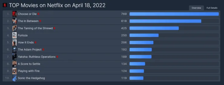 Los suscriptores de la plataforma tienen gustos variados, ya que en la última semana eligieron como film favorito a Entre la vida y la muerte, lo nuevo de Joey King, pero su paso ha sido fugaz en el ranking principal de audiencia, ya que acaba de ser superada. De acuerdo al Top 10 diario del sitio FlixPatrol, ahora mismo la película más vista en todo el mundo es Elige o Muere.