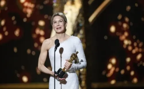 Renée Zellweger con su Oscar a Mejor Actriz por Judy
