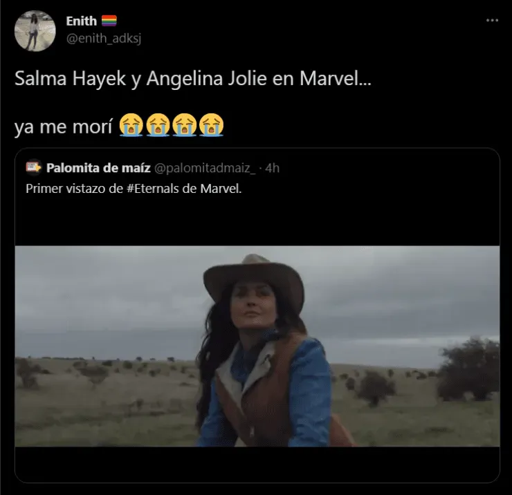 Con los anuncios del día de la fecha también tuvimos pequeños adelanto de cada uno de los proyectos de Marvel que llegarán próximamente. “Cuando amas algo luchas por ello”, dice el clip de Eternals, en el que también confirman que llegará en noviembre de este año. Salma Hayek y Angelina Jolie hicieron su presentación en la franquicia y así reaccionaron sus seguidores: