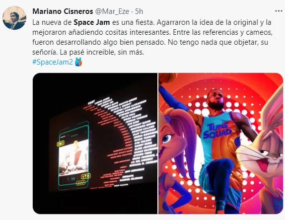 En tanto, los aficionados en redes sociales fueron más elogiosos, aunque reconocieron que no es mejor que la original. “La nueva película de Space Jam es muy divertida, si aman a los Looney Tunes y la NBAles va a encantar, obviamente no es mejor que la de Michael Jordan, pero si está buena para verla en compañía”, fue el tono de los comentarios.