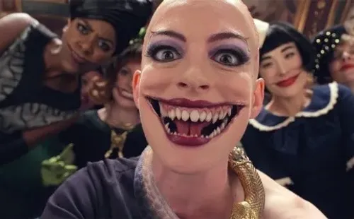 En un nuevo adelanto publicado por la actriz y las redes sociales de la película, observamos a unaAnne Hathaway irreconocible. Al comienzo vemos a una mujer glamurosa utilizando vestidos púrpura y sacos en blanco y negro,con cicatrices en en la boca, pero de a poco se convierte en un ser realmente terrorífico. ¡Miralo!