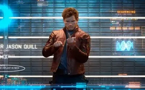 En la escena que los cinco integrantes viajan a Knowhere para venderle la Gema del Poder al Coleccionista, interpretado por Benicio del Toro, las cosas terminan mal cuando su asistente Carina lanza una piedra y desencadena una explosión. Es allí que Peter Quill es sorprendido y dice: “What the f-!”, sin llegar a completar el insulto.