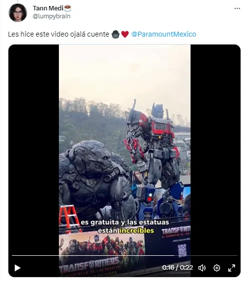 Y lo mejor es que la idea es que acudas a esta exposición para que te tomes una foto con los personajes de la película, para que la subas a tus redes sociales y así, la cuenta oficial de Paramount Pictures México la pueda compartir en sus perfiles en internet. Y tú, ¿acudirás a ver la nueva cinta de Transformers?