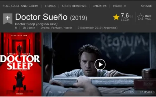 Este fin de semana se estrenó “Doctor Sleep”, dirigida por Mike Flanagan y protagonizada por Ewan McGregor. Está basada en la novela homónima de Stephen King que funciona como una secuela de “El Resplandor”.