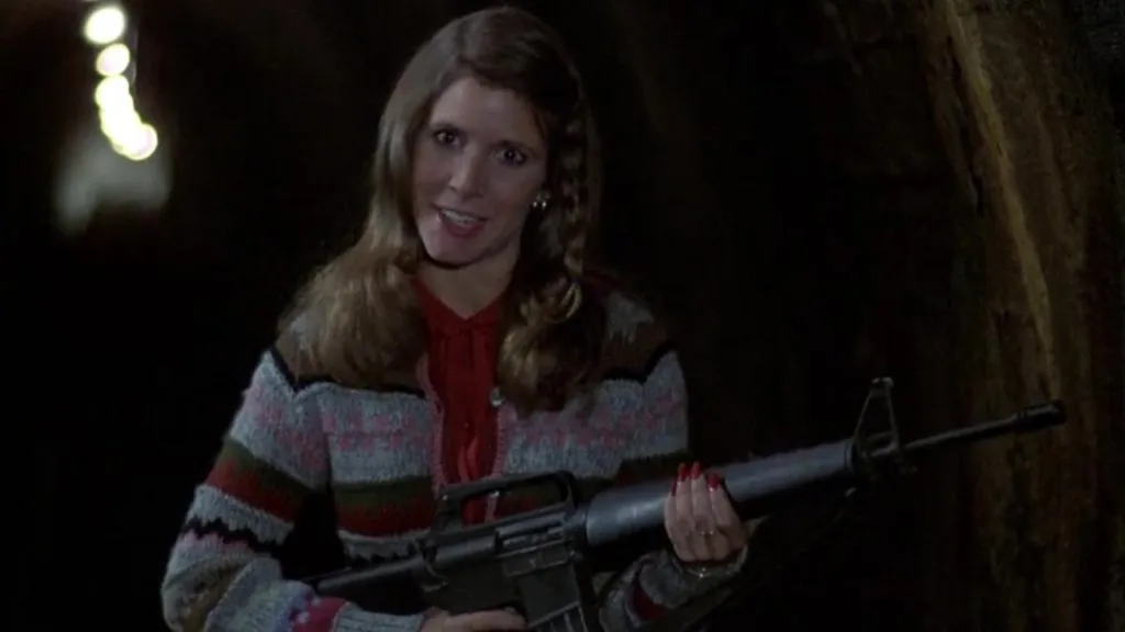 In a small but memorable role in “The Blues Brothers,” Carrie Fisher played The Mystery Woman, Jake Blues’ vengeful ex-fiancée who attempts to murder him for leaving her at the altar. Her chaotic and furious presence, involving a rocket launcher, provided a dark, hilarious edge to the film.