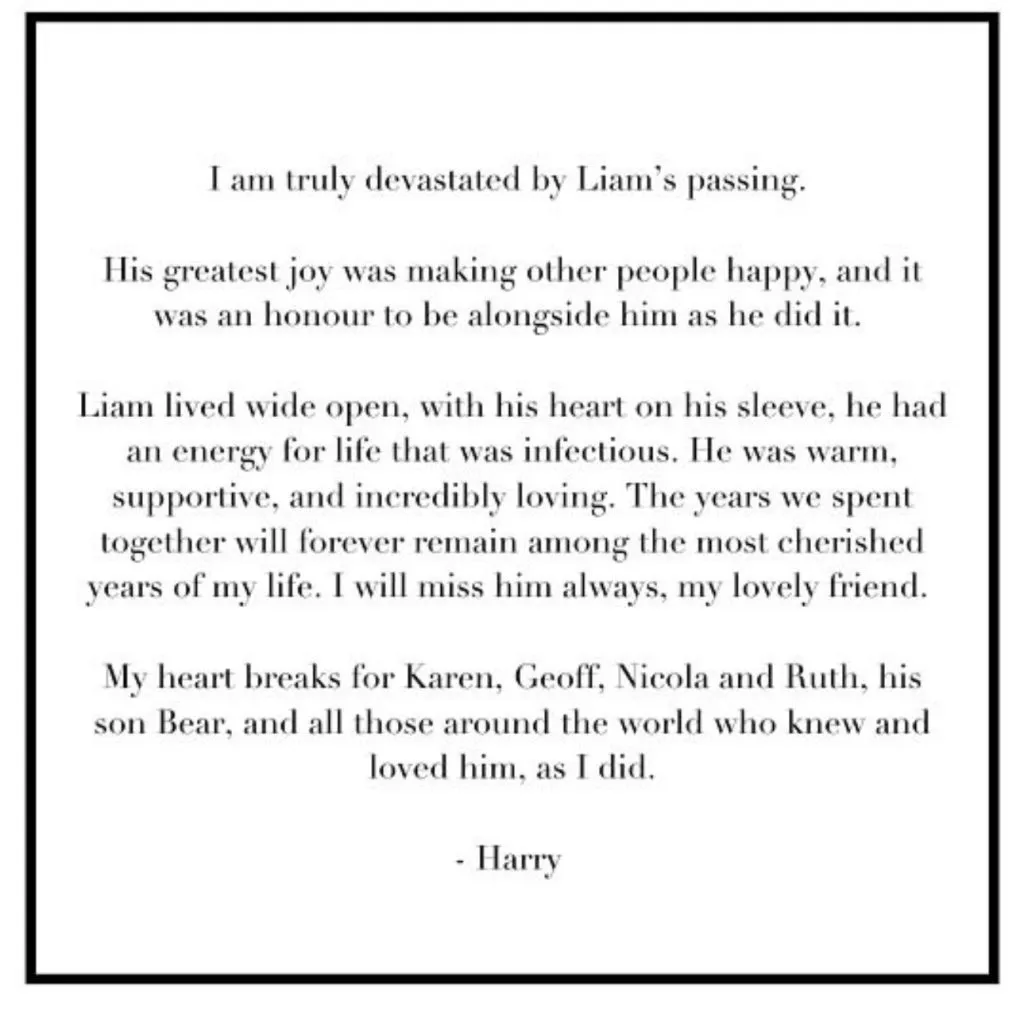 “We’re completely devastated by the news of Liam’s passing. In time, and when everyone is able to, there will be more to say. But for now, we will take some time to grieve and process the loss of our brother, who we loved dearly. The memories we shared with him will be treasured forever. For now, our thoughts are with his family, his friends, and the fans who loved him alongside us. We will miss him terribly. We love you, Liam“, read the 1D IG post.