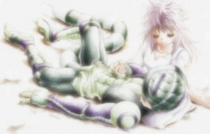 In a dimly lit room far from the battlefield, the once-feared King Meruem spends his final moments not in glory but in peace, seated beside Komugi, the girl who changed everything. As the poison from his battle slowly takes his life, he asks only for her company, her voice, and her hand. She stays, gently playing their game of Gungi and whispering comfort until the very end. With Komugi calling his name one last time, Meruem passes not as a tyrant but as someone finally loved.