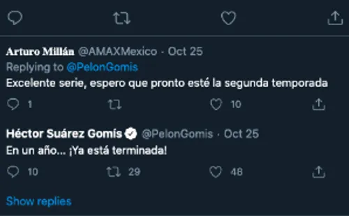 Los trabajos de la serie debieron frenarse en marzo producto de la pandemia del coronavirus, pero se pudieron retomar en julio con estrictas medidas sanitarias. Los actores regresaron al trabajo y terminaron de rodarla segunda temporada. Así lo confirmó Héctor Suárez Gomís, intérprete de Luis Casas, en su cuenta de Twitter.