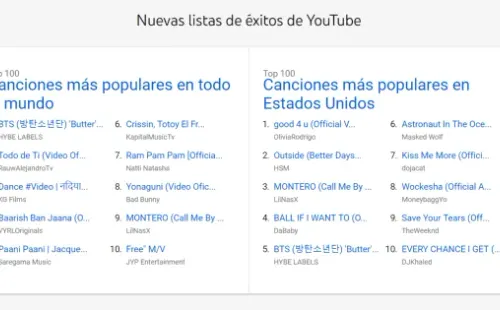 El Top 100 de canciones más populares en todo el mundo de YouTube está liderado por la banda suroreana, gracias a ‘Butter’, videoclip que tiene una cifra de 407 millones de reproducciones, el cual que lanzado en la red el 18 de mayo. En la lista de éxitos supera a cantantes de reggaeton como Rauw Alejandro, Natti Natasha y Bad Bunny. De esta manera, queda demostrado que, al menos por hoy, la corona le pertenece al K-Pop.