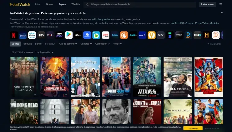 Solamente ingresando a su sitio web oficial, al cual puedes acceder haciendo click aquí, te aparecerán todos los servicios disponibles, dependiendo el país en el que te encuentres. En el caso de Argentina, tenemos una fila con los logotipos de Netflix, Disney+, Amazon Prime Video, Apple TV+, Star+, HBO Max, Paramount+, Crunchyroll, Quibit TV, MUBI, CINEAR y VIX, entre otros.