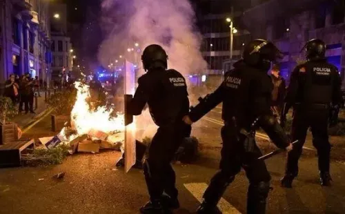 En algunas ciudades, como Barcelona, Madrid, Santander, Bilbao y Málaga,se desencadenaron disturbios por estas protestas contra las medidas impuestas, dejando imágenes de vandalismo, violencia, decenas de detenidos y agentes heridos. En el medio de esta situación, hubo una particularidad que llamó la atención del público en las redes sociales.