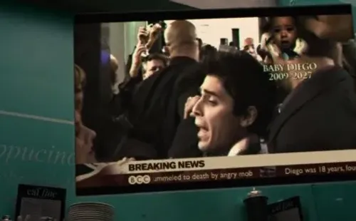 En una de las primeras escenas muestran que elser humano más joven del planeta es un argentino llamado “Baby Diego”, siendo la persona más famosa de todas. De acuerdo a Juan Yacuzzi, actor que interpretó al personaje en la película, el mexicano le puso ese nombre en honor a Maradona. ¡Mira el video de la escena!