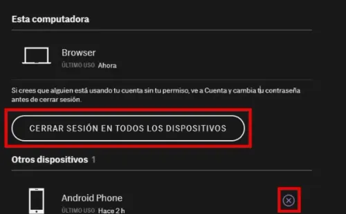 – Elige el dispositivo que queiras eliminar y presiona “Cerrar sesión”