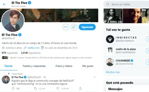 La cuenta de Twitter, denominada ‘@NetflixLat’ publicó: “Si soy capaz de acabar con la comisión, obvio puedo robarme esta cuenta”. Pero el segundo comentario levantó aún más las sospechas de que se trataría de un hacker: “Alguien que le diga al community manager de NetflixLAT que “winteriscoming” no es una contraseña segura”. El comentario de “Winter is coming” estuvo referido a la serie ‘Game of Thrones’, de HBO.