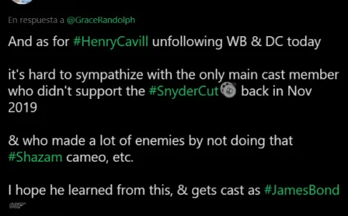 Mucho se ha estado hablando en los últimos días por las sensaciones de Cavill en este momento, donde es claramente maltratado, según afirman los fans. Es por eso que la influencer estadounidense Grace Randolph investigó por su propia cuenta y señaló que su furia estaba clara cuando notó que dejó de seguir en sus redes tanto a Warner Bros. como a DC Comics.