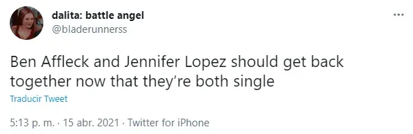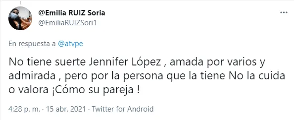 La noticia emocionó a los fanáticos de la intérprete neoyorquina y entre los comentarios se lamentaron que todavía no haya podido encontrar una personapara casarse. JLO tuvo al menos ocho relaciones famosas entre las que se encontraronOjani Noa,Ben Affleck, Chris Judd yMarc Anthony, con quien tuvo hijos gemelos.