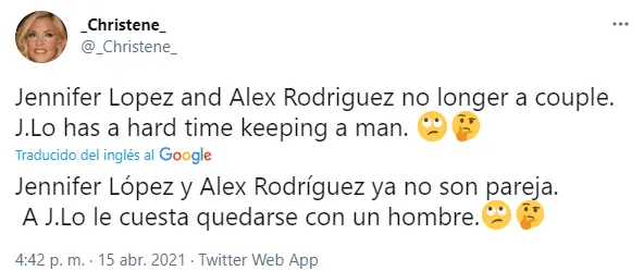 Además, la pareja que hacía con Rodríguez estaba entre las más populares y un sentimiento de tristeza se apoderó de los fanáticos. “Ella es una intérprete increíble. Sentí que ella y ARod estaban bien emparejados. Me siento triste por ellos. Estoy seguro de que es un momento difícil. Pero parece ser una superviviente”, fue el tono de los comentarios.Por otro lado, estuvieron quienes comenzaron a buscar pareja para la actriz.
