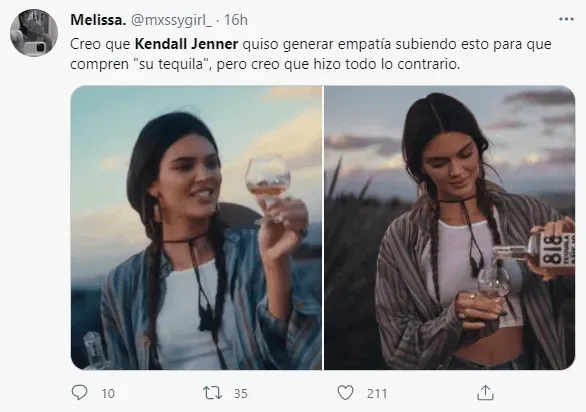 Una parte del público entendió el gesto como una ofenza a las raíces mexicanas. Incluso aseguraron queKendall se apropió de unacultura que desconoce totalmente con sólo fines comerciales.“Miren soy Kendall Jenner tengo trenzas y convivo con la gente pobre compren mi tequila”, fue el tono de los comentarios en las redes sociales.