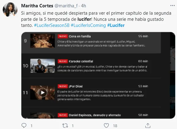 La segunda mitad de la temporada 5 además contiene el esperado capítulo musical que anunció el protagonistas de la serie en septiembre. “El episodio musical surgió del hecho de que todos pensaban que la quinta temporada de Lucifer era de hecho la última temporada.Así que teníamos una especie de lista de cosas que no habíamos hecho y que queríamos hacer”, indicó sobre una de las sorpresas de los nuevos episodios.
