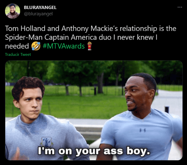 El último gran suceso del Universo Cinematográfico de Marvel fue la serie The Falcon and The Winter Soldier, la cual se pudo ver mediante el servicio de streaming Disney+. Allí vimos más de Sam Wilson y Bucky Barnes después de Avengers: Endgame, y sus actores ganaron más reconocimiento. Es por eso que Anthony Mackie se llevó un premio en losMTV Movie and TV Awards, pero sin antes dejarle un mensaje a Tom Holland que causó risas en las redes.