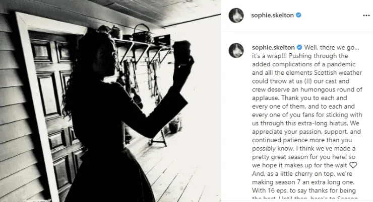 Sophie Skelton, actriz deBrianna Randall Fraser, fue otra de las que despidió a la sexta temporada y más se explayó sobre los problemas que atravesó el equipo. “Superamoslas complicaciones adicionales de una pandemia y todos los elementos que el clima escocés podría arrojarnos, nuestro elenco y equipo se merecen una enorme ronda de aplausos”, sostuvo.