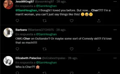 Como sabemos, Sam es muy activo en sus redes sociales, donde comparte mensajes importantes y fotos de sus vacaciones, como las últimas en México. En este caso utilizó su perfil oficial de Twitter, donde cuenta con más de 700 mil seguidores, para responder la pregunta: “¿Quién es la chica co-protagonista de tus sueños?”, a lo que respondió con exclamación: “Cher!!!!”, dejando perplejos a sus aficionados por creer que iba a mencionar a Caitriona.