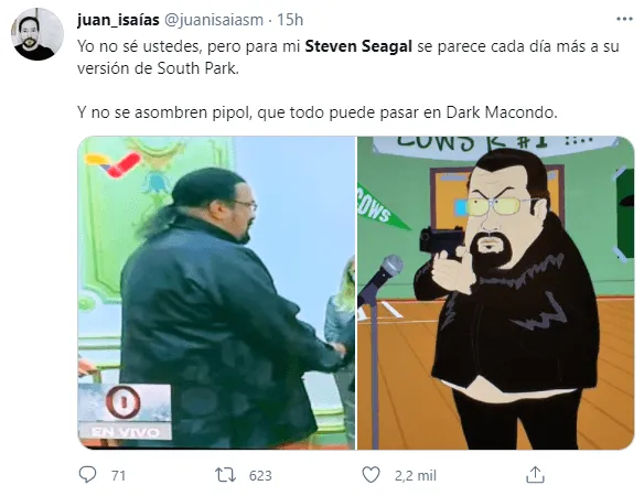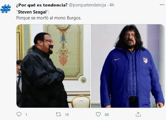 Las reacciones también incluyeron divertidas comparaciones por su estado físico y además manifestaron la sopresa que produce el cambio de vida del actor. Gracias a su afinidad con el Gobierno de Vladimir Putin,Seagal senacionalizóruso y fue nombrado en 2018 comoenviado especial de la cancillería de ese paíspara actos reacionados con la cultura.