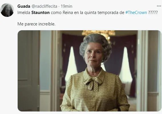 The Crowntrabajapara lanzar su quinta temporada y nuevamente tendrá cambios significativos porque renovará todo su elenco con las nuevas versiones de sus personajes. Para amenizar el largo camino que hacia el estreno, Netflixcompartió este viernes la primera imagen oficial que tiene ala reina Isabel interpretada por Imelda Staunton. ¡Mira la foto y las reacciones que tuvo!