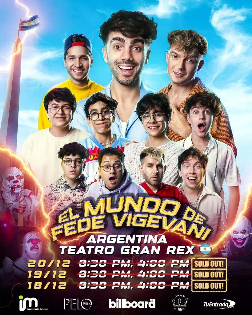 Uno de los nombres más mencionados en las últimas horas fue el de Fede Vigevani. Esto se debe a que el reconocido youtuber que ha logrado destacarse en la plataforma con su carisma, contenido variado y una conexión genuina con su audiencia agotó seis funciones en el Teatro Gran Rex, uno de los escenarios más importantes de Argentina: se presentará el 18/12, 19/12 y 20/12 con dos shows en cada fecha.