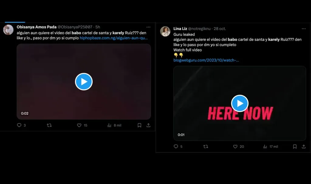 La confusión sobre el supuesto estreno del clip, surgió después de que diversos usuarios de Twitter lanzaron publicaciones prometiendo pasar el link del video sin censura de Karely Ruiz y Babo. Pero, en realidad los protagonistas no han confirmado el estreno, así que aquí te contamos toda la verdad sobre esta grabación.