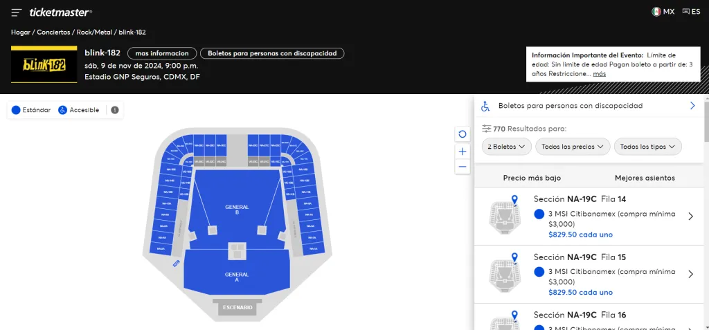 Y es que al entrar a la página web de Ticketmaster, la empresa boletera que se encarga de la venta de entradas para el concierto planeado para este 9 de noviembre, se puede apreciar que no se han vendido ni la mitad de las entradas.