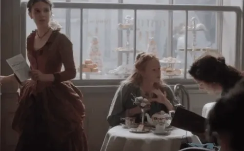 Esto ocurre en el minuto 42:15 cuando Enola visita un café en búsqueda de su madre perdida. En una de las mesas se puede ver a dos jóvenes, una de pelo rojo y otra de pelo negro. Inmediatamente los seguidores de Anne with an E las identificaron como Anne y Diana, y aunque claramente no son las actrices Amybeth McNulty y Dalila Bela, se puede llegar a creer que son los mismos personajes. Pero, ¿cómo puede ser esto posible?