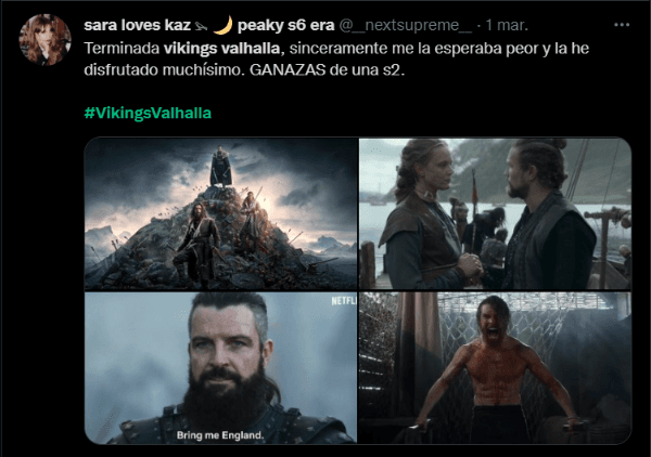 El desafío de Netflix estaba claro y era reconquistar a aquellos fanáticos que disfrutaron de las seis temporadas de la ficción creada por Michael Hirst. En la era de la modernidad, los comentarios de cualquier persona en el mundo se puede ver a través de las redes sociales, y fue en Twitter donde una parte de los aficionados le levantó el pulgar y espera por la segunda temporada, de la que aún no hay fecha de estreno.