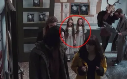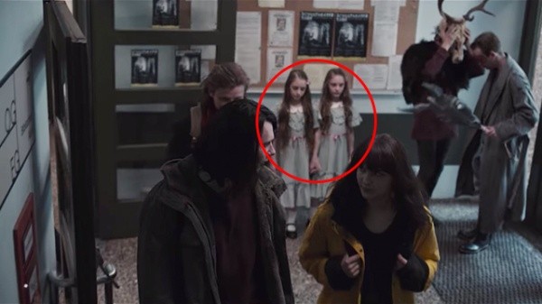 Detrás de ella se pueden observar a dos niñas muy misteriosas tomadas de la mano y son muy parecidas a las de la película ‘El Resplandor’, un clásico del cine estrenadoen 1980. La escena es muy rápida, pero tiene un claro mensaje: los productores de la serie decidieron incluir a las pequeñas para homenajear a Stanley Kubrick, director de dicho filme.