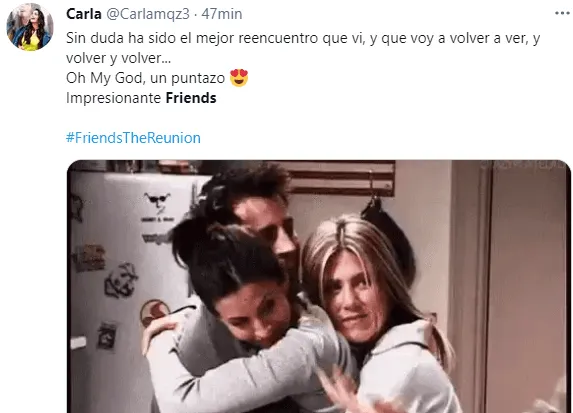 Si bien en Latinoamérica todavía no se puede ver hasta la llegada del streaming el 29 de junio, los fanáticos de todas partes del mundo comentaron el lanzamiento. Tanto en España como en Estados Unidos, los latinos disfrutaron de ver nuevamente juntos aJennifer Aniston,Lisa Kudrow,Courtney Cox,Matt LeBlanc,Matthew PerryyDavid Schwimmer.