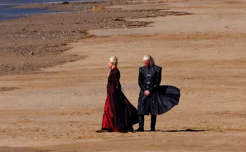 En las primeras imagenes filtradas lo vemos caracterizado como Daemon Targaryen, hermano menor del rey Viserys y herederno del trono: “Es un guerrero sin igual y un jinete de dragones que posee la verdadera sangre de dragón”, dicen las palabras con las que fue anunciado el personaje.También vemos a Emma D’Arcy como la princesa Rhaenyra Targaryen, primogénita del rey y pura sangre valyria.
