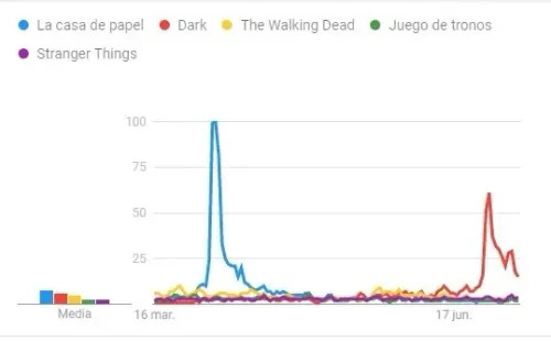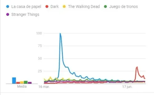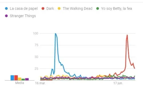 El análisis está basado por las búsquedas realizadas en Google desde el 16 de marzo del 2020 hasta el 9 de julio (no están contempladas las series animadas ni documentales).Y a la hora de coronar a una serie como ‘la más buscada en el mundo durante la pandemia’, la galardonada es ‘La casa de papel’. Sí, la producción española tuvo su pico en abril cuando se estrenó su cuarta temporada. Algo similar a lo ocurrido con ‘Dark’a fines de junio.