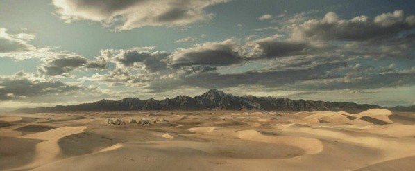 En el film vemos que Loki escapa, pero no sabemos hacia dónde. Aquí tenemos la respuesta: el Tesseracto lo envía a una parte de Mongolia y aterriza en la arena tal como lo hizo Tony Stark, aunque éste llevaba su primera armadura, Mark 1.