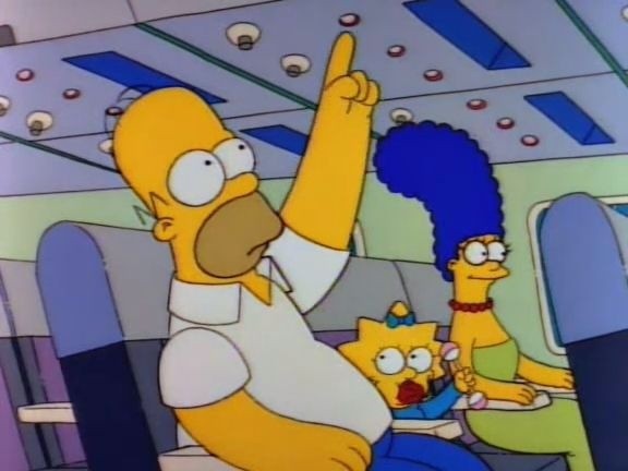 La confusión o el error aparece cuando recordamos el episodio en el que Marge declara su miedo a volar, que es de la temporada 6. Entonces, tres temporadas antes no tuvo ningún problemas, pero luego la vemos con miedo a subir a un avión y hasta va a una terapeuta para ayudarla. Allí sabemos que su trauma se genera cuando descubre que su padre es un aeromozo, además de sufrir un ataque aéreo en la granja donde creció.