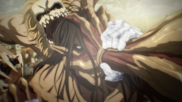 Jelena le pide al joven Jaeger que se esconda para que no lo atrapen, pero éste no hace caso y se dirige a una nueva batalla frente a Reiner, esta vez acompañado de Galliard. Cuando estaba todo a favor del protagonista, una munición de cañón impacta contra la cabeza del titán, dejándolo completamente vulnerable. Mientras tanto, Armin, Mikasa y sus amigos en las celdas se preparan para ayudar a quien era su amigo, pero inmediatamente se escuchan los gritos de dolor de Eren ante un nuevo ataque de Braun, dejando la continuación para el próximo capítulo.