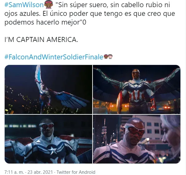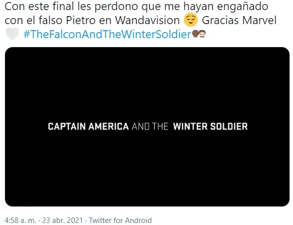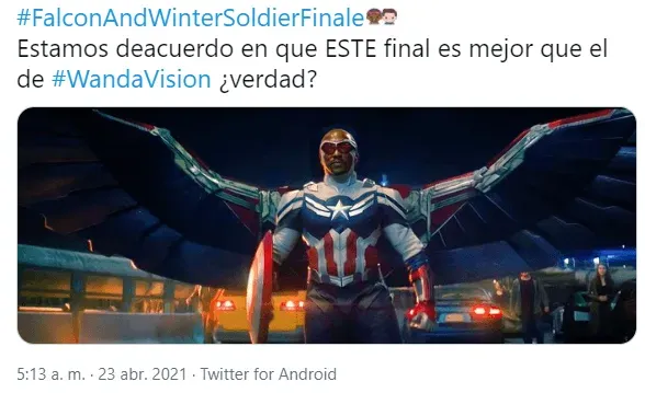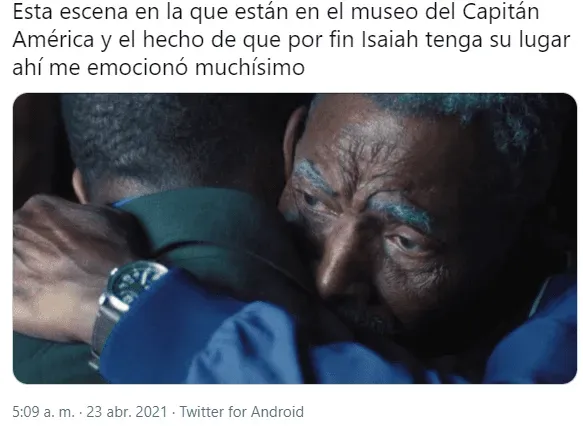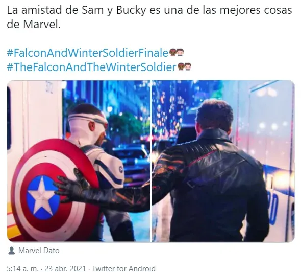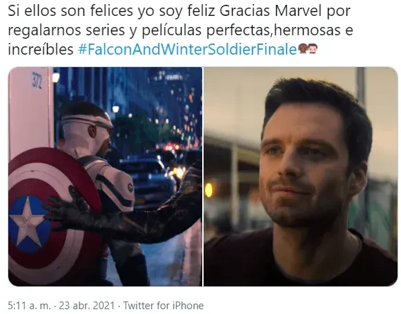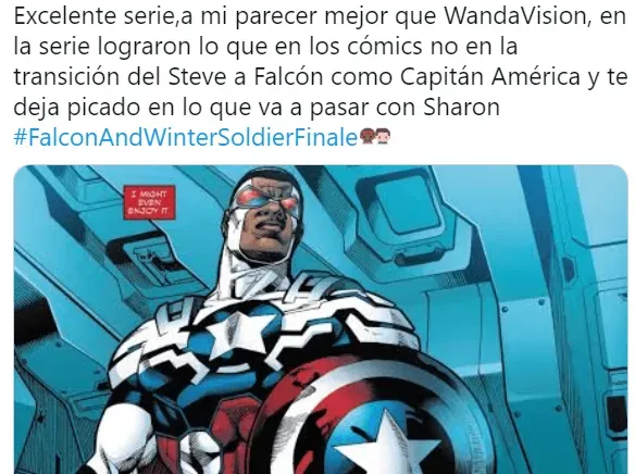 Además, otros comentarios alabaron cómo el show abordó la relación de Sam y Bucky, destacaron el mensaje social de inclusión del episodio, aplaudieron la actuación de Emily VanCamp y se lamentaron porque Captain America and the Winter Soldier (como se renombró en el cierre) haya terminado.