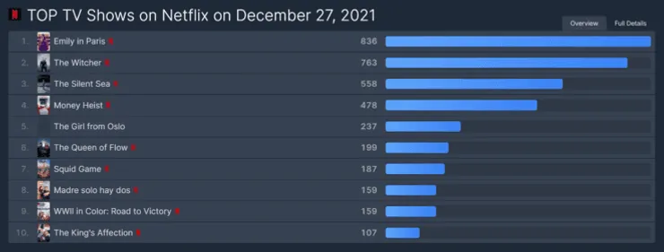 Desde el comienzo del mes, La Casa de Papel se había adueñado del ranking de audiencia durante algunas semanas, hasta que el programa protagonizado por Henry Cavill le arrebató el primer lugar. Sin embargo, cinco días después de su arribo a la biblioteca se lanzó la segunda entrega de Emily in Paris, show que actualmente es el más visto de Netflix en todo el mundo.
