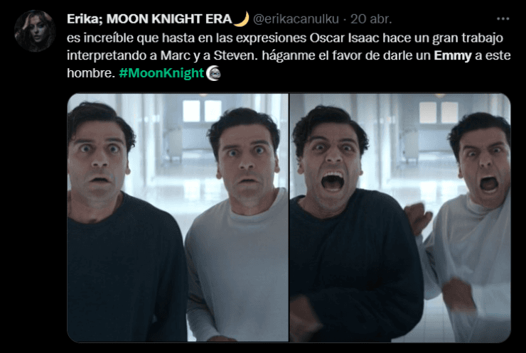 ¡Miércoles de Moon Knight! La serie del Universo Cinematográfico de Marvel estrenó su episodio 5, el cual será el penúltimo en el servicio de streaming Disney+. Una vez más, los fanáticos celebraron lo visto a lo largo de sus 50 minutos, pero específicamente se centraron en halagar una vez más la interpretación de su protagonista, Oscar Isaac, y ya piden reconocimientos para él. ¿Un Premio Emmy a la vista?