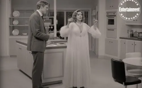 Esta producción está escrita y dirigida por Jac Schaeffer, y protagonizada por Elizabeth Olsen, Paul Bettany, Teyonah Parris (Monica Rambeau), Kat Dennings (Darcy Lewis), Kathryn Hahn (Agnes), Randall Park (Jimmy Woo). Narrará las vidas de Wanda Maximoff y Visión luego de los eventos de ‘Avengers: Endgame’ (2019), con un estilo cómico de sutiaciones clásicas del MCU. Tenemos un nuevo adelanto. ¡Mira las fotos!