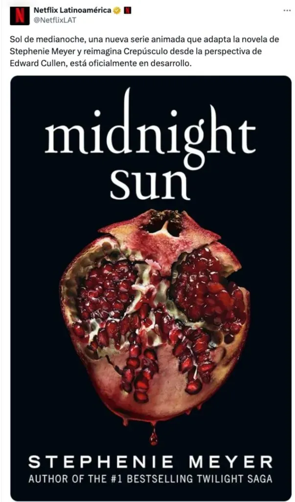 “Sol de medianoche, una nueva serie animada que adapta la novela de Stephenie Meyer y reimagina Crepúsculo desde la perspectiva de Edward Cullen, está oficialmente en desarrollo”, se lee en el post de Netflix.